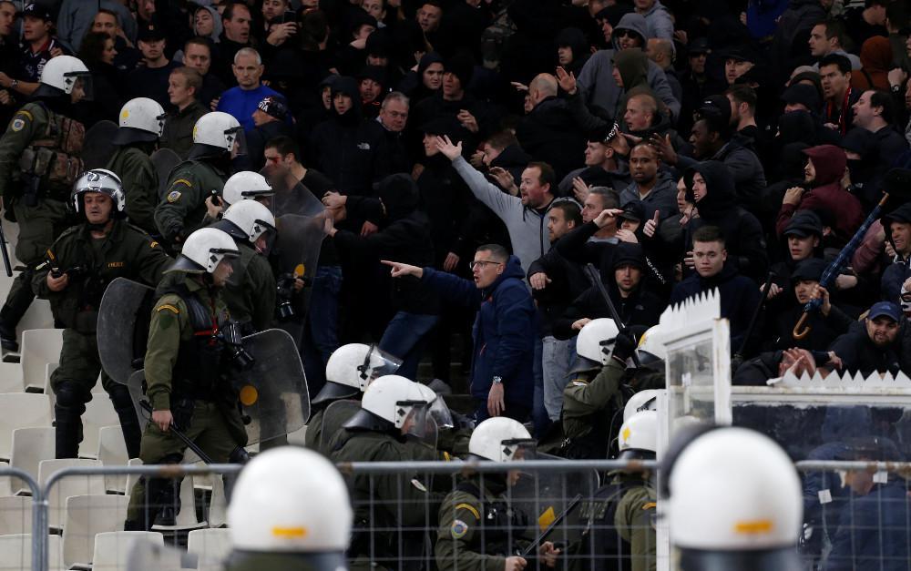 Αποτέλεσμα ήταν να παρέμβουν τα ΜΑΤ, με τις δυνάμεις καταστολής να κάνουν χρήση χημικών, ενώ λίγο αργότερα εισέβαλαν και στην κερκίδα των οπαδών του Άγιαξ.