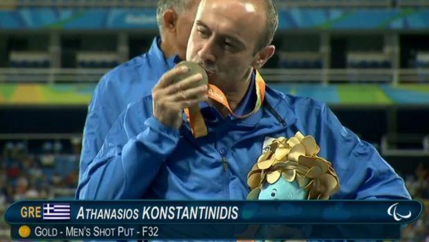 Ο Θανάσης Κωνσταντινίδης με τρία παγκόσμια ρεκόρ κατέκτησε το χρυσό μετάλλιο στη σφαίρα κατηγορίας F32, την ίδια στιγμή που ο Δημήτρης Ζησίδης ήταν «χάλκινος» στην ίδια κατηγορία.