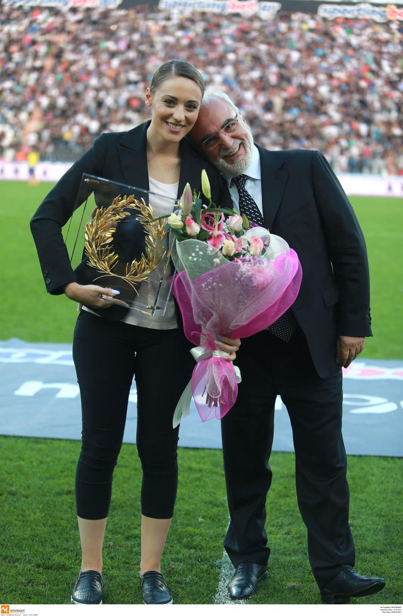 Η Ολυμπιονίκης από τη Δράμα ευχαρίστησε θερμά τον κ. Σαββίδη, ενώ δεν έκρυψε την ευγνωμοσύνη της για την αποθέωση που γνώρισε από τους φίλους του Δικεφάλου, μόλις πάτησε το χορτάρι της Τούμπας. Όπως, άλλωστε, έλεγε η ίδια στους ιθύνοντες των «ασπρόμαυρων», τα συναισθήματά της ήταν πολύ έντονα κατά την είσοδο στον αγωνιστικό χώρο.