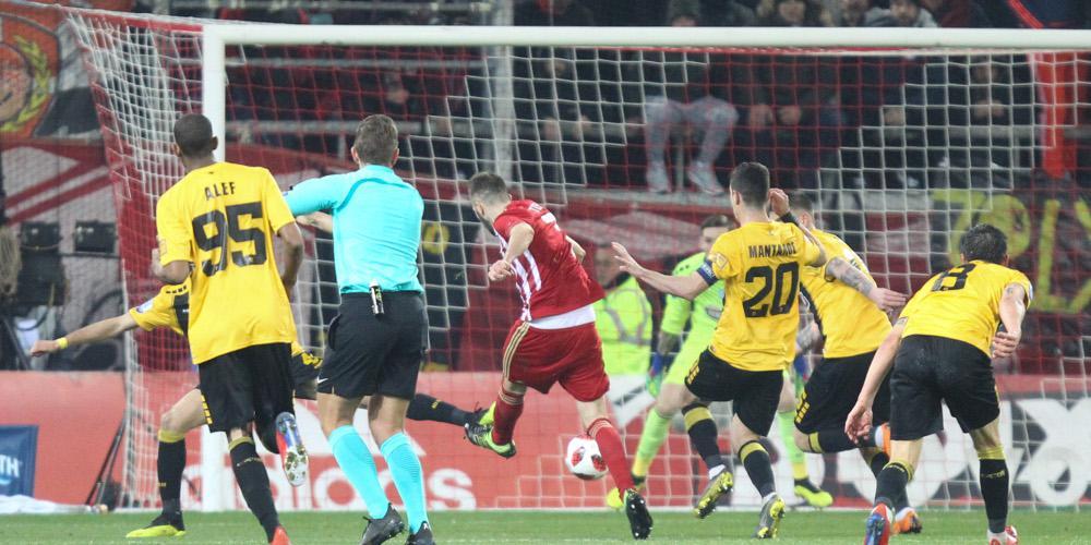Η επιθετικότητα που είχαν αναπτύξει εκ νέου οι Πειραιώτες ανταμείφθηκε στο 72ο λεπτό με ένα έξοχο γκολ του Φορτούνη, ο οποίος μετά το λάθος του Σιμόες πήρε την μπάλα, προχώρησε και με αριστερό συρτό σουτ από το ύψος της περιοχής νίκησε τον Μπάρκα, για την ανατροπή της ομάδας του. Αίφνης η ΑΕΚ κατέρρευσε, καθώς οι παίκτες του Χιμένεθ ανέβηκαν ψηλά, έδωσαν χώρους αλλά και την ευκαιρία στους αντιπάλους τους να βρουν χώρους και να φτάσουν στο εμφατικό 4-1, με τα γκολ των Χασάν στο 83΄ και Φορτούνη στο 87΄, με τον άσο του Ολυμπιακού να σκοράρει πάλι με το αριστερό, αφού πέρασε και τον Μπάρκα.