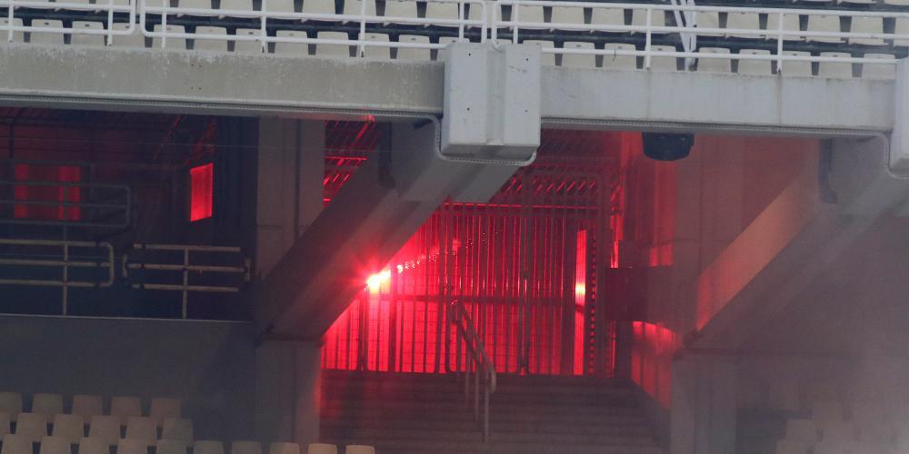 Η κατάσταση από τα καπνογόνα και τα δακρυγόνα έγινε αποπνικτική στο ΟΑΚΑ και ο Γερμανός διαιτητής του ντέρμπι αιωνίων έστειλε τις δύο ομάδες στα αποδυτήρια.