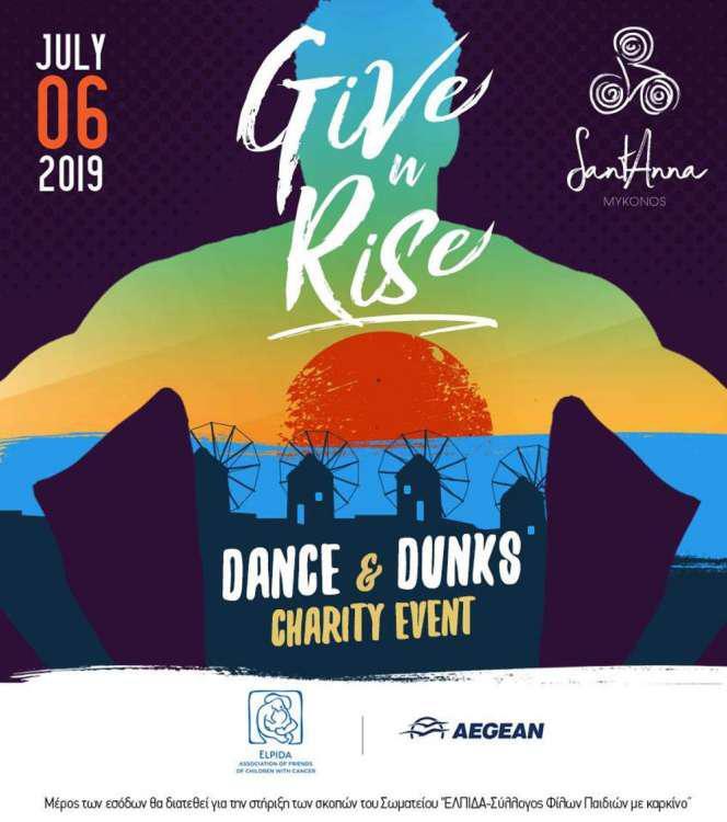 Με σύνθημα «Give and Rise» νέοι από ολόκληρο τον κόσμο καλούνται να ανεβάσουν στο Ιnstagram το δικό τους video πραγματοποιώντας ένα κάρφωμα. Οι καλύτεροι θα επιλεγούν από τον Γιάννη Αντετοκούνμπο και θα κληθούν να διαγωνιστούν live στο «SantAnna DunksandDance Charity Event» που θα πραγματοποιηθεί το Σάββατο 6 Ιουλίου 2019 στο beach club SantAnna στην Μυκονο.