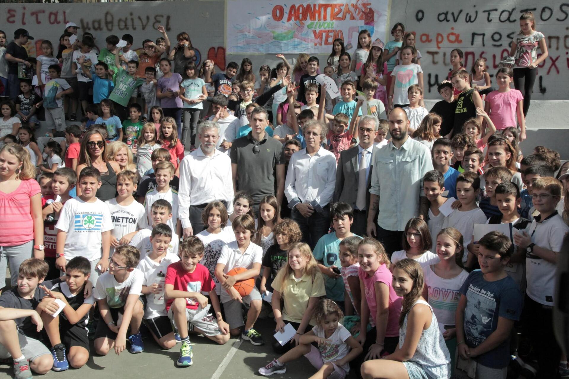 Στο ίδιο μήκος κύματος και ο Βασίλης Σπανούλης: «Είμαστε πολύ χαρούμενοι που βρισκόμαστε ανάμεσά σας και νιώθουμε κι εμείς παιδιά. Εμείς είμαστε ευλογημένοι και τυχεροί που ασχοληθήκαμε με τον αθλητισμό, αλλά θέλω να σας επισημάνω να μην παραμελείτε ποτέ τα μαθήματά σας και να καλλιεργείτε το μυαλό σας, αυτό θα σας βοηθήσει και στον αθλητισμό. Το πιο σημαντικό μήνυμα του αθλητισμού είναι η συνεργασία με τον διπλανό μας για να πετύχουμε κάτι. Αυτό να το θυμάστε».