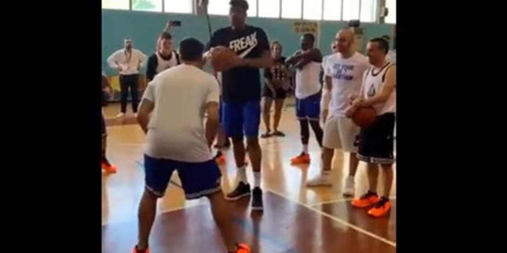 Ο MVP του NBA σήκωσε στο γάντι στο «μονό» και κάρφωσε με άνεση στο καλάθι, αναγκάζοντας τον αντίπαλό του να τον… προσκυνήσει.