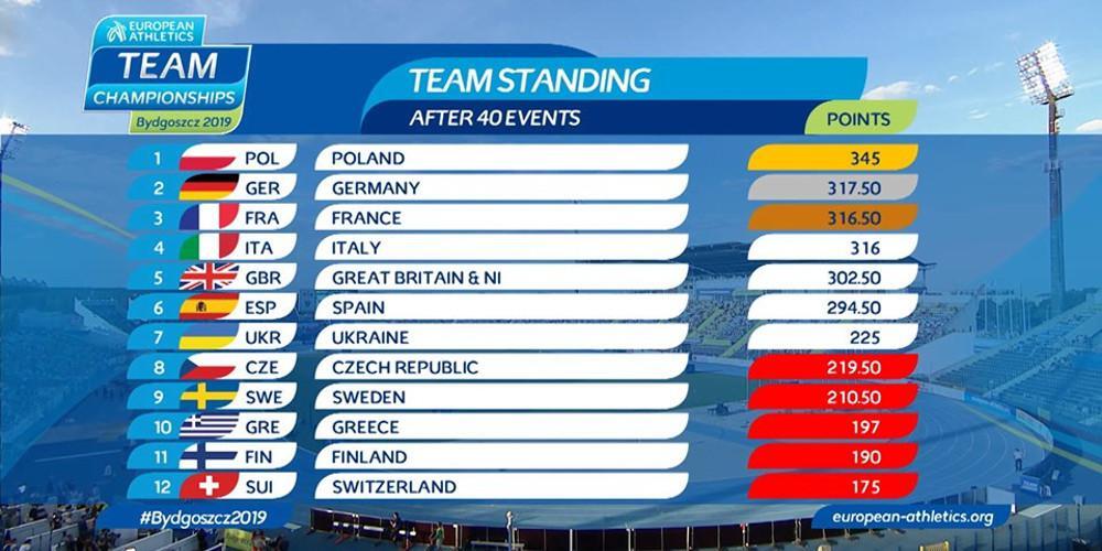 Πρωταθλήτρια για πρώτη φορά στην ιστορία της αναδείχθηκε η Πολωνία με 345 βαθμούς, αφήνοντας 2η τη Γερμανία και 3η τη Γαλλία.