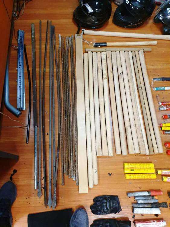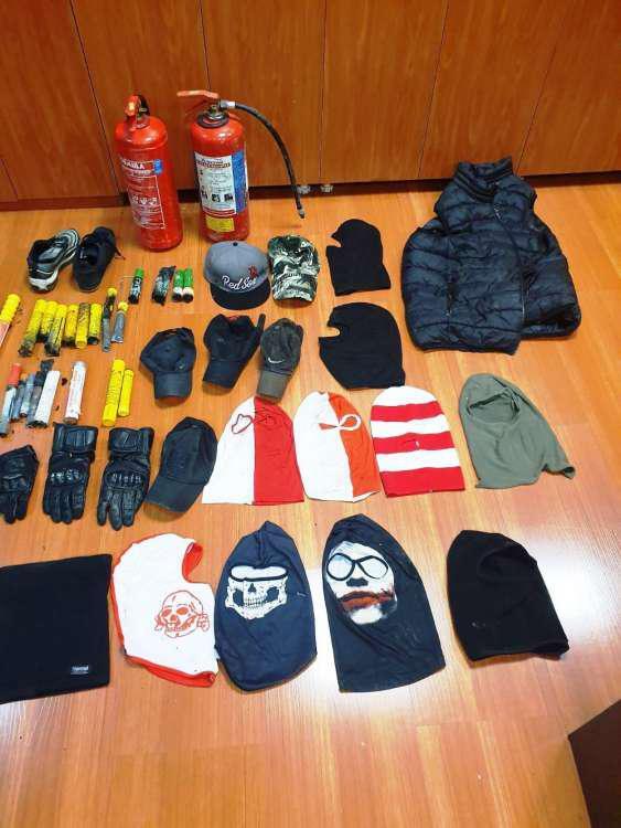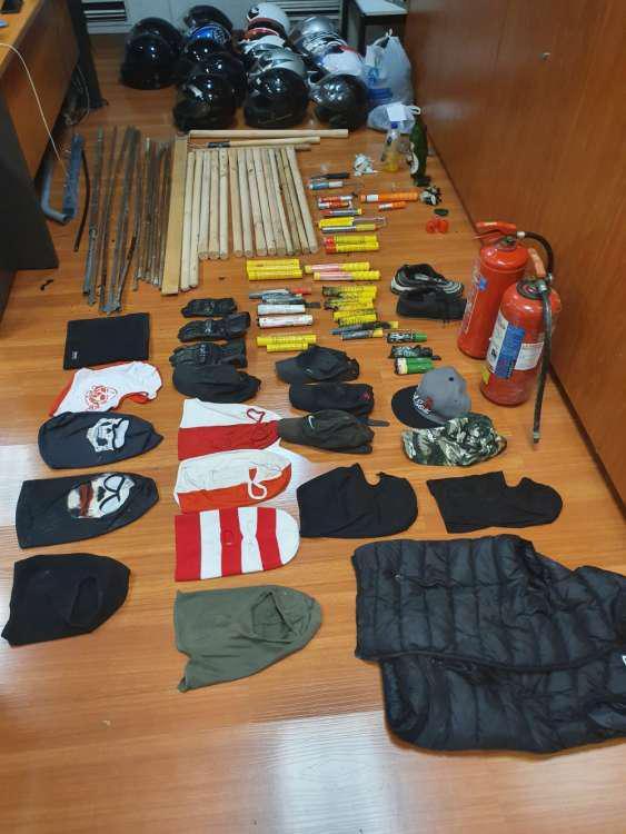 Οι συμπλοκές μεταξύ των οπαδών έληξαν μόλις εμφανίστηκαν στο σημείο αστυνομικές δυνάμεις. Την Δευτέρα το μεσημέρι η ΕΛ.ΑΣ. έδωσε στην δημοσιότητα φωτογραφίες από τον οπλισμό των οπαδών.