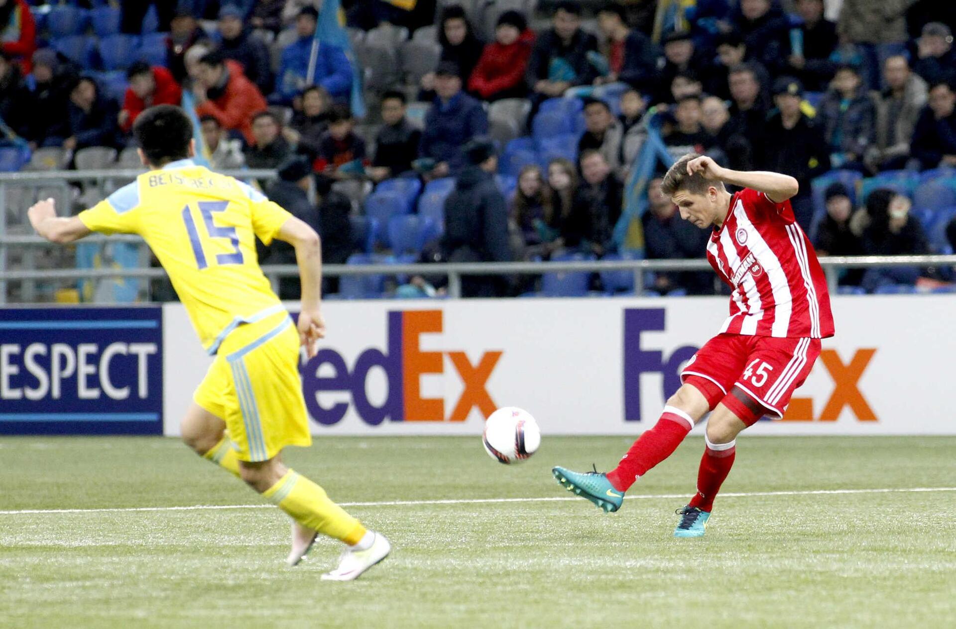 Οι «ερυθρόλευκοι» απείλησαν νωρίς με κόρνερ στο 4′ και καρφωτή κεφαλιά του Βιάνα, που πέρασε ελάχιστα πάνω από το δοκάρι, όμως η Αστάνα «απάντησε» αμέσως και με γκολ. Στο 8′ ο Τουμάσι έφυγε από δεξιά, μπήκε στην περιοχή, γύρισε στον Ντεσπότοβιτς κι αυτός από κοντά έκανε το 1-0. Στη συνέχεια οι γηπεδούχοι ήταν πολύ πιο κινητικοί, είχαν ρυθμό και χτυπούσαν με ταχύτητα από τα άκρα και κυρίως από τη μεριά του Ρέτσου, που αντιμετώπιζε σοβαρά προβλήματα. Ωστόσο στο 21′ ο Ολυμπιακός βρήκε κενό, αλλά ο Καρντόσο από εξαιρετική θέση και με τον τερματοφύλακα εξουδετερωμένο, δεν κατάφερε να το εκμεταλλευτεί και στο 30′ κατάφερε να ισοφαρίσει, με κεφαλιά του Σεμπά, μετά από σέντρα του Μανθάτη. Από εκείνη τη στιγμή η Αστάνα έχασε τον ρυθμό της και το ματς ισορρόπησε.