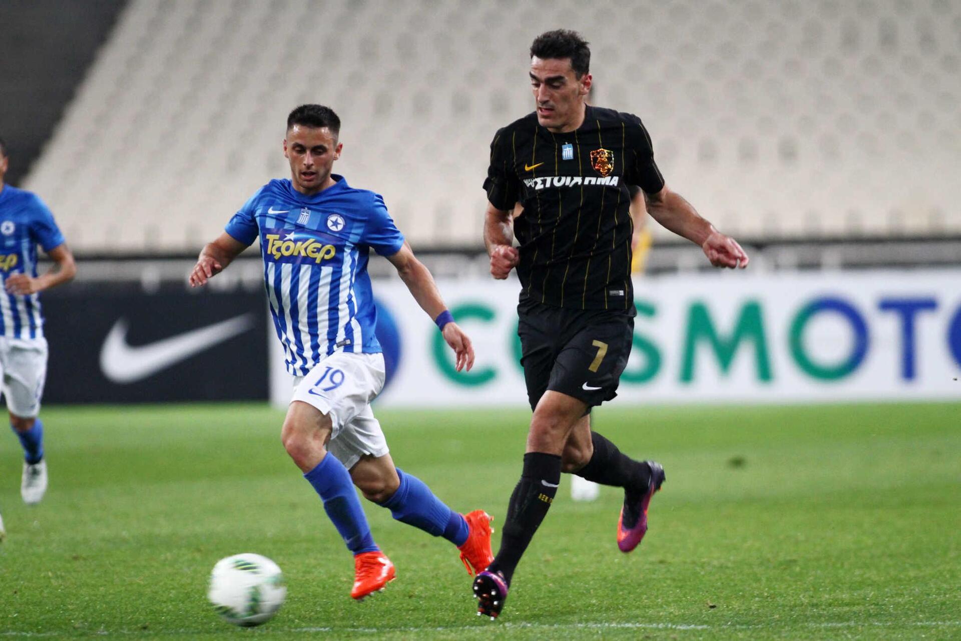 Με γκολ από τα… αποδυτήρια ξεκίνησε το ματς, όταν ο Ούμπιδες δεν κατάφερε να απομακρύνει σωστά, ο Μάνταλος πήρε τη μπάλα και με δυνατό σουτ άνοιξε το σκορ μόλις στο 3ο λεπτό. Για περίπου μισή ώρα η ΑΕΚ ξεδίπλωσε στον αγωνιστικό χώρο τα αποτελέσματα της δουλειάς του Ζοζέ Μοράις, πραγματοποιώντας την πιο «μεστή» φετινή της εμφάνιση σε δημιουργικό επίπεδο. Ομως στη συνέχεια ο Ατρόμητος πήρε μέτρα στο γήπεδο, ισορρόπησε το ματς και απείλησε άμεσα με τον Βασιλείου στο 45΄ ο οποίος (αν και έφυγε από θέση οφσάιντ) βρέθηκε απέναντι από τον Ανέστη αλλά προσπάθησε να σκοράρει μόνος, αντί να πασάρει δίπλα στον εντελώς αμαρκάριστο, Στόιτσεφ.