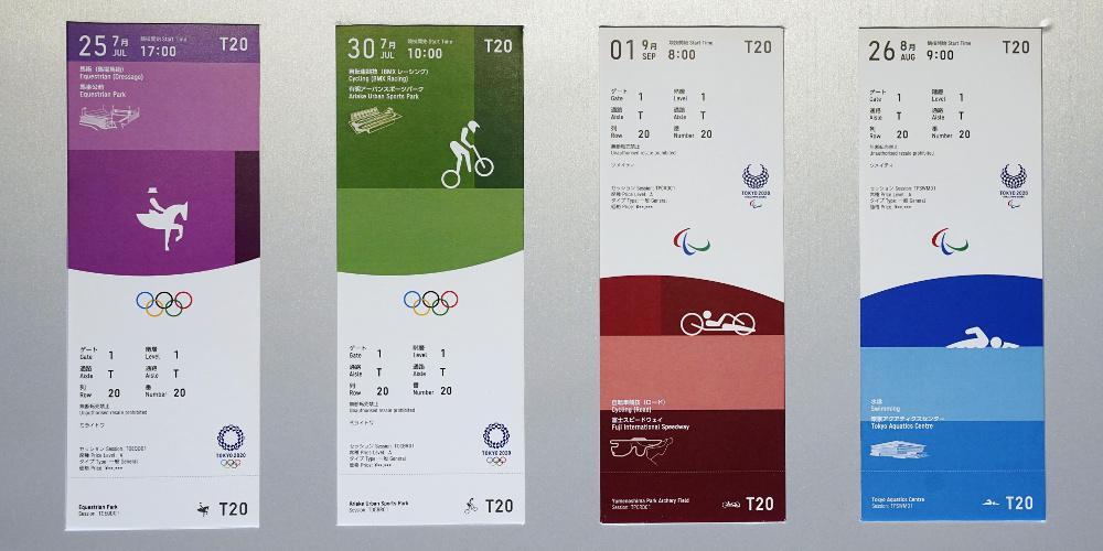 Οι διοργανωτές δήλωσαν ότι τα σχέδια των απλών εισιτηρίων, τα οποία φέρουν τα εικονογράμματα κάθε μεμονωμένου γεγονότος και έχουν ένα από τα τέσσερα χρώματα, εμπνέονται από τη δημιουργία υφασμάτων για κιμονό, την παραδοσιακή ιαπωνική ενδυμασία.