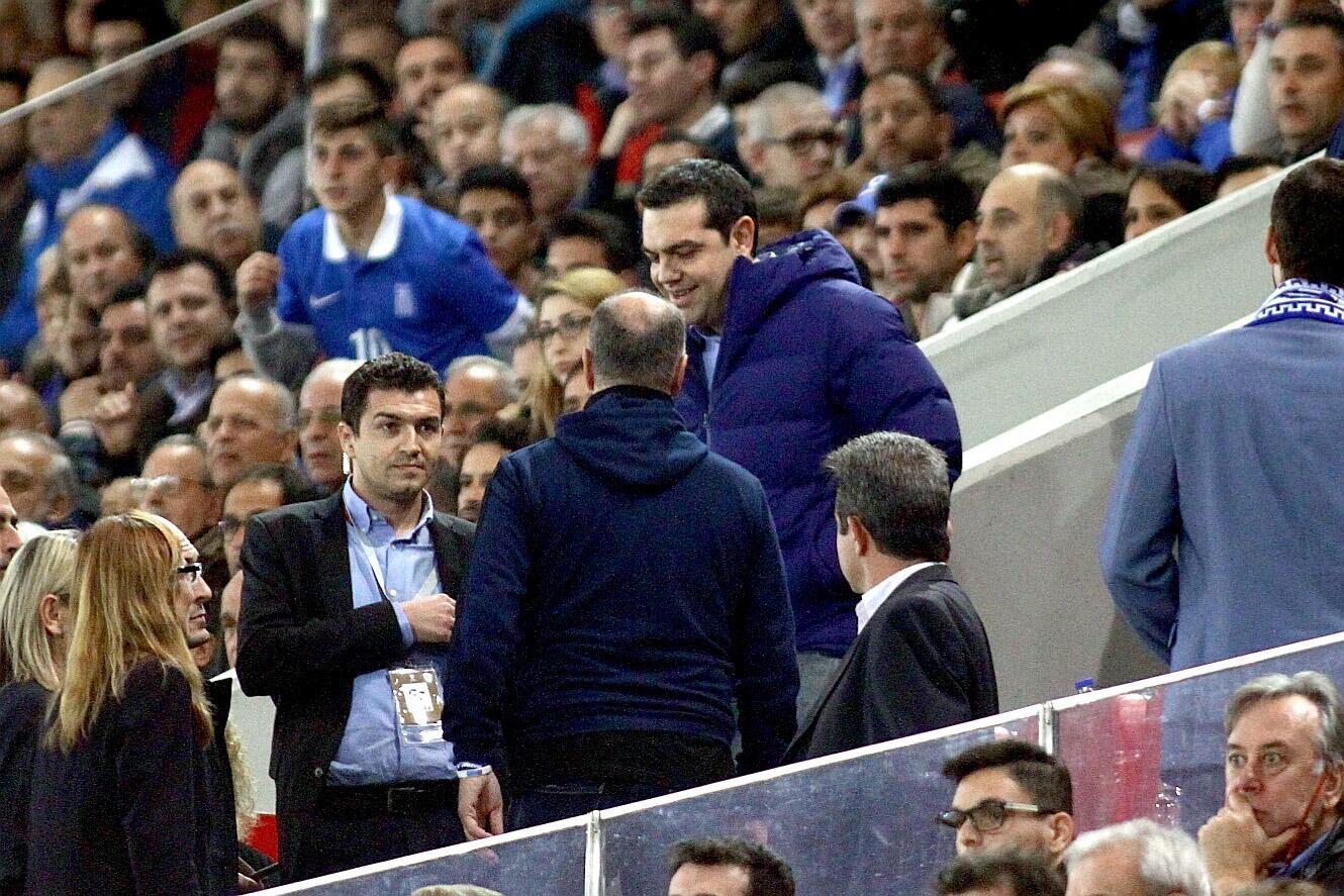 Σύμφωνα με το δημοσίευμα ο κ. Τσίπρας αμέσως μετά το ματς, κατέβηκε στα αποδυτήρια της Εθνικής για να συγχαρεί τους παίκτες. Αρχικά είχε θερμό εναγκαλισμό με τον «χρυσό» σκόρερ, Γιώργο Τζαβέλλα ενώ στη συνέχεια απευθυνόμενος στον Μίκαελ Σκίμπε του είπε πως είναι «ο καλύτερος Γερμανός φίλος που έχει».