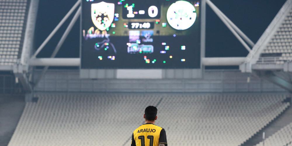 Όπως την πρωταπριλιά του 2018 είχε ανοίξει το δρόμο για την τελευταία νίκη της ΑΕΚ σε ντέρμπι, έτσι και σήμερα, στο 8ο λεπτό, ο Αραούχο με εκπληκτική κίνηση και αριστερό σουτ άνοιξε το σκορ.