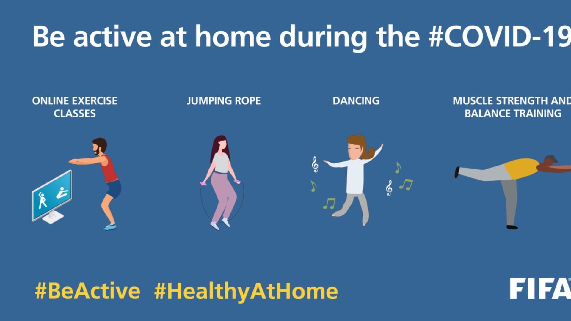 Στο πλαίσιο της καμπάνιας Be Active, διάσημοι ποδοσφαιριστές στέλνουν το παρακάτω μήνυμα: «Αυτή την ώρα ακόμα και οι αντίπαλοι ενώνουν τις δυνάμεις τους. Πρέπει να κρατάμε απόσταση, χωρίς όμως να χάνουμε τον στόχο. Μπορούμε να επιδείξουμε αλληλεγγύη παραμένοντας δραστήριοι. Αυτό σημαίνει ότι πρέπει να τηρούμε τις οδηγίες που εκδίδει ο Παγκόσμιος Οργανισμός Υγείας. Ο Παγκόσμιος Οργανισμός Υγείας, η εξειδικευμένη υπηρεσία υγείας του Οργανισμού Ηνωμένων Εθνών, και η Διεθνής Ομοσπονδία Ποδοσφαίρου (FIFA), η παγκόσμια υπερκείμενη αρχή του ποδοσφαίρου, συνεργάζονται στενά για την προώθηση του υγιούς τρόπου ζωής μέσω του ποδοσφαίρου σε παγκόσμιο επίπεδο».