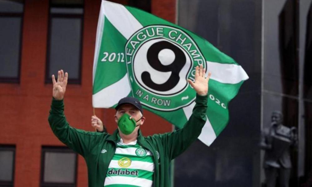 Κρατώντας λοιπόν μια σημαία με τον αριθμό «9» (που παραπέμπει στα ισάριθμα συνεχόμενα πρωταθλήματα των «καθολικών») τράβηξε video, που κάνει πλέον τον γύρο του κόσμου.