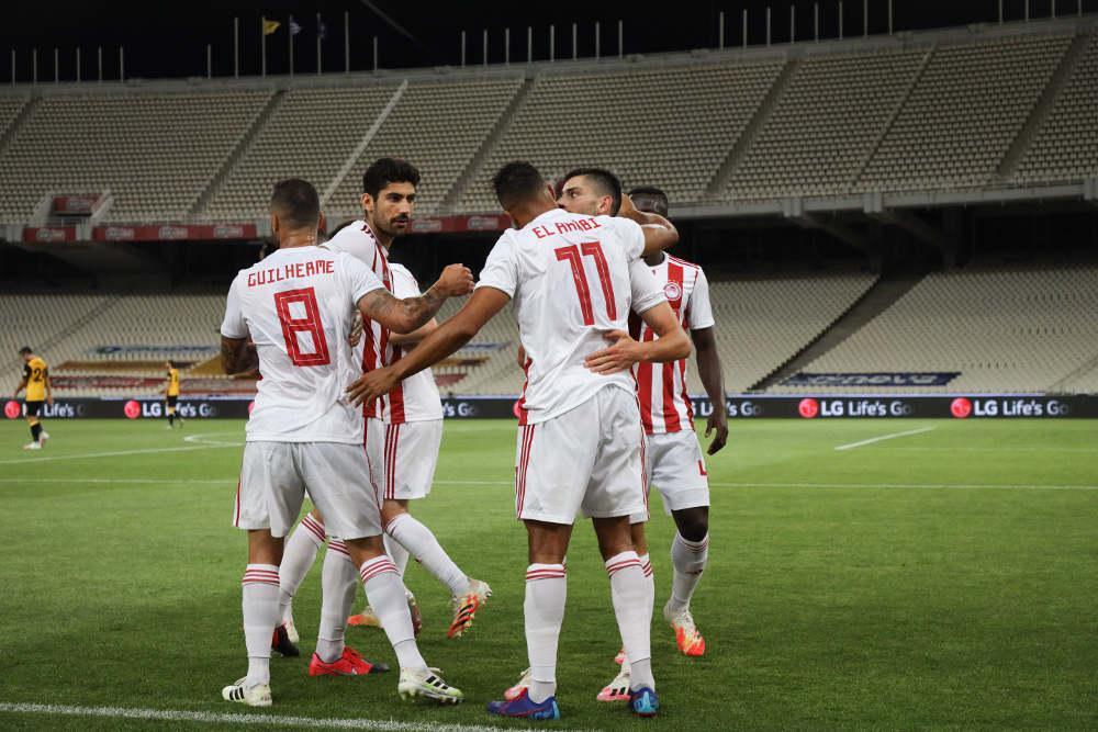 Στο 38΄ ο Ολυμπιακός άνοιξε το σκορ με το 20ό τέρμα του Ελ Αραμπί στο πρωτάθλημα. Ακριβώς στο 45΄ ο Καμαρά, μετά από προσπάθεια που ξεκίνησε και πάλι από τον Μπουχαλάκη (είχε δώσει την πάσα στον Μασούρα στην φάση του πρώτου γκολ των Πειραιωτών), «έγραψε» το 2-0 με σουτ και τα πράγματα έδειχναν να παίρνουν το δρόμο τους.
