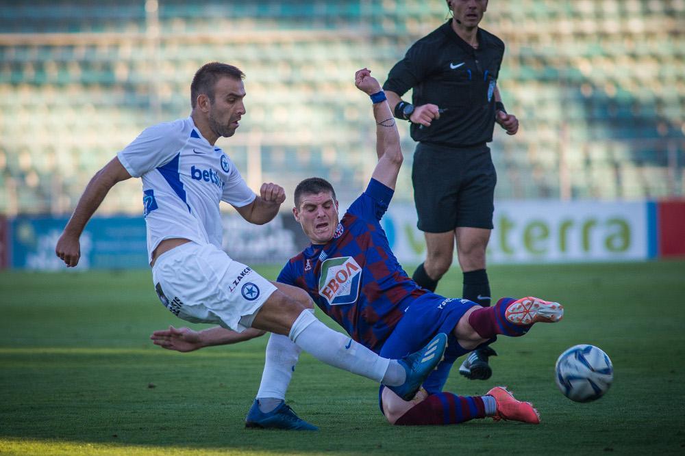 Στο πρώτο ημίχρονο ήταν οι «βυσσινί» που απείλησαν πρώτοι, με ένα σουτ του Παπάζογλου από πάσα του Μιλοσάβλιεβιτς που μπλόκαρε ο Επασί, για να «απαντήσουν» οι γηπεδούχοι με μια κεφαλιά του Σκόνδρα στο 43΄, που πέρασε άουτ.
