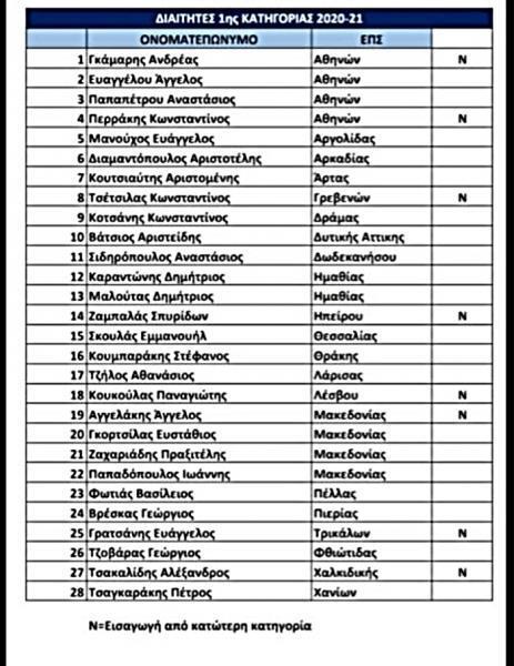 Οι οκτώ νέοι διαιτητές προερχόμενοι από κατώτερη κατηγορία είναι οι Ανδρέας Γκάμαρης, Κωνσταντίνος Περράκης, Κωνσταντίνος Τσετσίλας, Σπυρίδων Ζαμπάλας, Παναγιώτης Κουκούλας, Άγγελος Αγγελάκης, Ευάγγελος Γρατσάνης και Αλέξανδρος Τσακαλίδης.