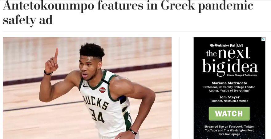 Η αμερικανική εφημερίδα αναφέρει χαρακτηριστικά πως ο MVP του ΝΒΑ μιλά στα ελληνικά λέγοντας πως «όλες οι νίκες ξεκινούν με άμυνα», ενώ τονίζει πως το εν λόγω βίντεο περιλαμβάνει φωτογραφίες του ίδιου και των αδελφών του που μεγάλωσαν σε μια γειτονιά της Αθήνας, τα Σεπόλια.