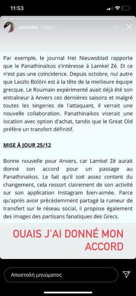 Συγκεκριμένα, ο Ζε ανέβασε στο Instagram, ένα βελγικό δημοσίευμα που αναφερόταν στις επαφές με το τριφύλλι και σχολίασε χαρακτηριστικά: