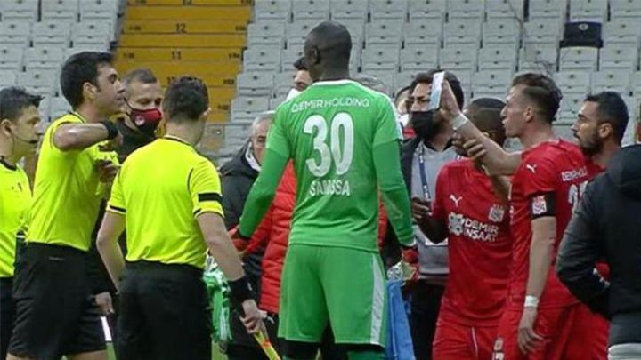 Μόλις ο διαιτητής σφύριξε για τελευταία φορά στο πρώτο 45λεπτο, ο αρχηγός της Σιβασπόρ, Χακάν Αρσλάν έσπευσε προς το μέρος του και κρατώντας ένα κινητό τηλέφωνο, του έδειξε σε βίντεο το λάθος που είχε κάνει κατακυρώνοντας το γκολ που σημείωσε στο 18ο λεπτό ο Γιαλκίν για λογαριασμό των γηπεδούχων.