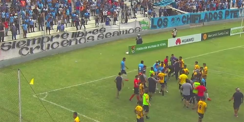 Κάποιοι ποδοσφαιριστές της Blooming, οι οποίοι αρχικά τα έβαζαν με τους οπαδούς τους για τα αντικείμενα που πετούσαν, επιτέθηκαν με μανία προς τους παίκτες της Strongest, ενώ στο χορτάρι βρέθηκαν και δεκάδες οπαδοί των γηπεδούχων που άρχισαν να χτυπούν αδιακρίτως όποιον έβλεπαν μπροστά τους.