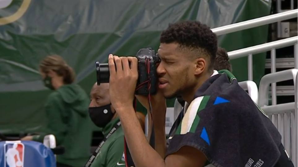 Ο ηγέτης των Μπακς αργότερα αφού έκατσε στον πάγκο για να ξεκουραστεί, πήρε μια κάμερα και εξασκήθηκε στην τέχνη της φωτογραφίας.