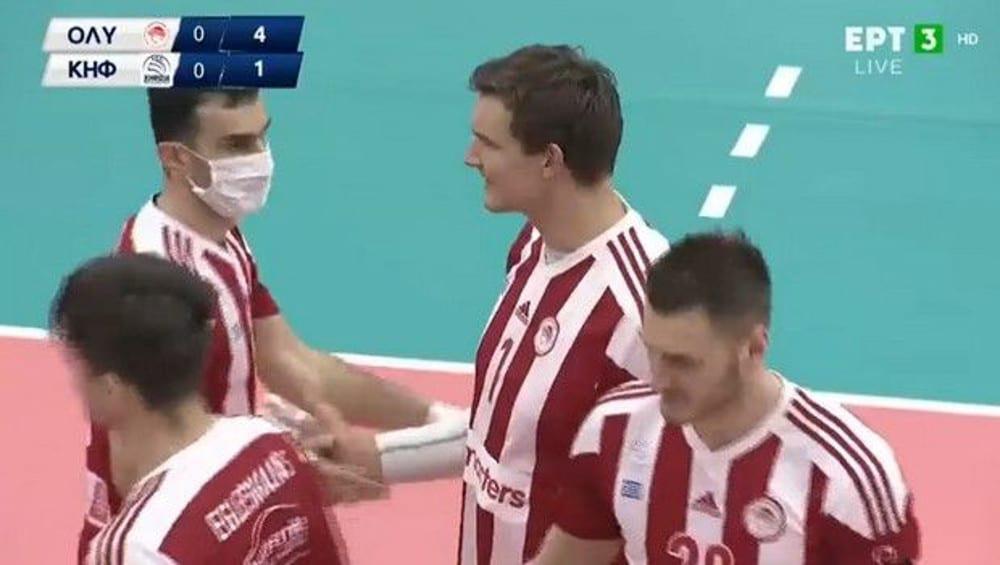 Ο πασαδόρος των ερυθρολεύκων έγινε ο πρώτος αθλητής στην Ελλάδα που είχε μάσκα εν ώρα αγώνα, εν προκειμένω σε αναμέτρηση για τη Volley League των ανδρών.