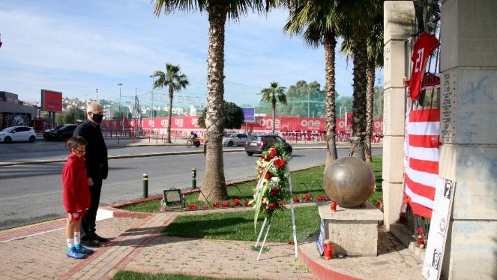 Πριν από τον αγώνα των «ερυθρόλευκων» με τον ΟΦΗ, για την 21η αγωνιστική της Super League, ο δήμαρχος Πειραιά, Γιάννης Μώραλης, ο «ισχυρός άνδρας» των Πειραιωτών, Βαγγέλης Μαρινάκης, ο εκ των ιδιοκτητών της ΚΑΕ Ολυμπιακός, Παναγιώτης Αγγελόπουλος, και ο πρόεδρος του Ερασιτέχνη, Μιχάλης Κουντούρης, προχώρησαν σε κατάθεση στεφάνων, ενώ άφησαν από ένα τριαντάφυλλο στο μνημείο, τιμώντας τη μνήμη των 21 αδικοχαμένων της Θύρας 7, που έχασαν τη ζωή τους στις 8 Φεβρουαρίου του 1981.