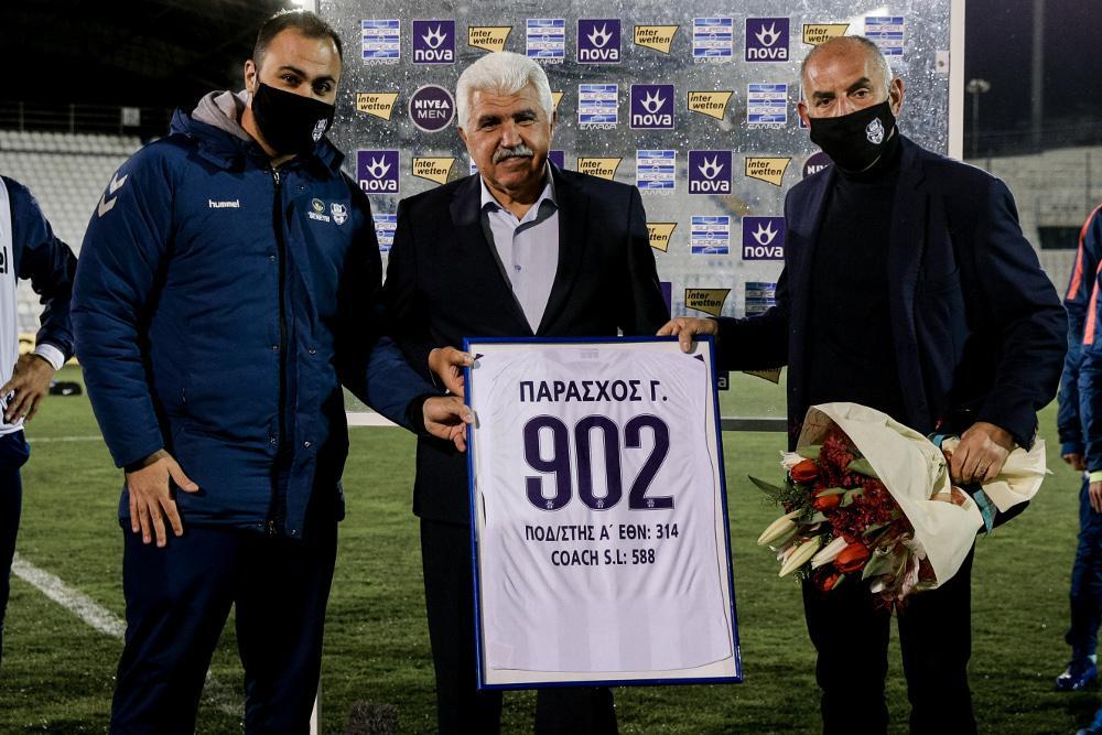 ***Τις 903 εμφανίσεις στη μεγάλη κατηγορία του ελληνικού επαγγελματικού ποδοσφαίρου (Α’ Εθνική / Super League) ως ποδοσφαιριστής (314) και ως προπονητής (589) έφτασε ο Γιώργος Παράσχος, ο οποίος και τιμήθηκε πριν την έναρξη της αναμέτρησης από τον Λεωνίδα Μπουτσικάρη, πρόεδρο της Super League 1 για την 50ετή προσφορά του στο ποδόσφαιρο.