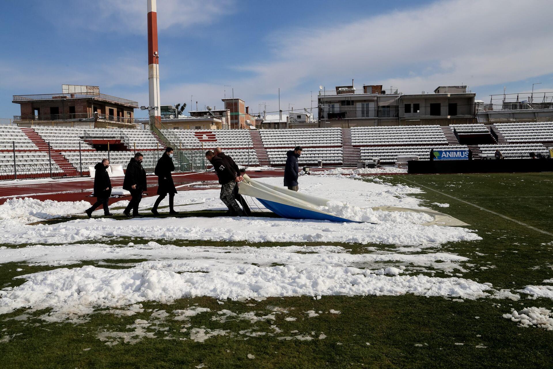 Οι εντατικές προσπάθειες απομάκρυνσης του χιονιού , σε συνδυασμό με την άνοδο της θερμοκρασίας που βοηθάει στο λιώσιμο του πάγου στα σημεία του γηπέδου που έχουν καθαριστεί, δημιουργούν αισιοδοξία πως θα είναι κατάλληλο το τερέν ώστε να γίνει το ματς, που έχει προγραμματιστεί για τις 17:15.