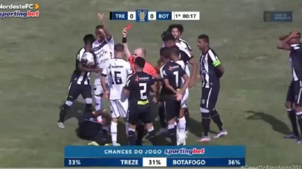 Kaio Wilker does a foul and gets a Red Card 10 seconds into the match [Botafogo-PB x Treze] (Copa do Nordeste) from r/soccer