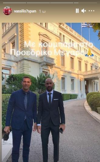 Η πρόεδρος της χώρας, Κατερίνα Αναστασοπούλου υποδέχθηκε σημαντικές προσωπικότητες από όλους τους χώρους και οι Σπανούλης και Ζήσης ήταν μεταξύ των καλεσμένων. Ο πρώην πια αρχηγός του Ολυμπιακού ανέβασε έτσι και δύο φωτογραφίες με τον κουμπάρο του, από την εκδήλωση.