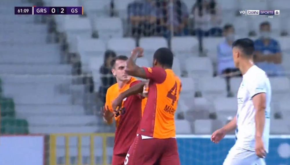 Συγκεκριμένα, στο 61’ της αναμέτρησης, ο Μαρκάο των φιλοξενούμενων προφανώς είχε διαφωνία με τον συμπαίκτη του, Ακτούρκογλου και μάλιστα έφτασε τέτοιο σημείο ώστε να χειροδικήσει.