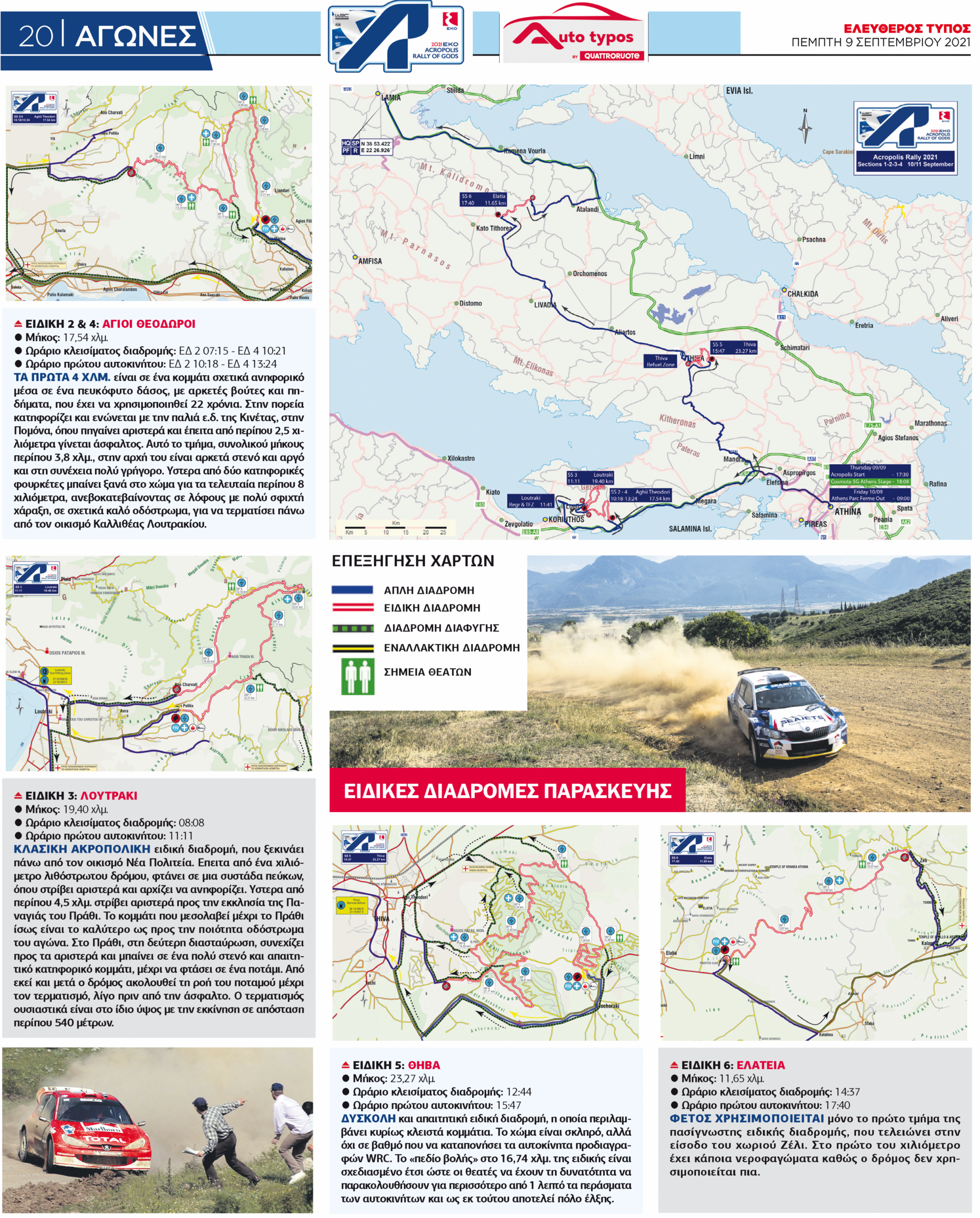 Την Παρασκευή 10 Σεπτεμβρίου τα πληρώματα θα κατευθυνθούν στην Πελοπόννησο και ειδικότερα στις βραβευμένες ειδικές διαδρομές Άγιοι Θεόδωροι και Λουτράκι. Η συνέχεια θα δοθεί στις ειδικές διαδρομές Θήβα και Ελάτεια.