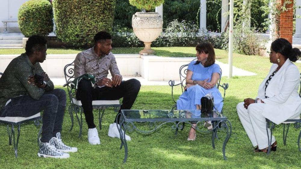 Εν συνεχεία, η κυρία Σακελλαροπούλου ενδιαφέρθηκε να μάθει και για τον μικρότερο αδερφό του Γιάννη Αντετοκούνμπο, τον ‘Αλεξ, ο οποίος ασχολείται και εκείνος επαγγελματικά με το Μπάσκετ, και μάλιστα έπαιξε έναν χρόνο στην Ισπανία, ενώ παράλληλα, τόνισαν ότι και τα τέσσερα από τα πέντε αδέρφια Αντετοκούνμπο ασχολούνται με το Μπάσκετ, ενώ ο Φράνσις ενδιαφέρεται για τη Μουσική.