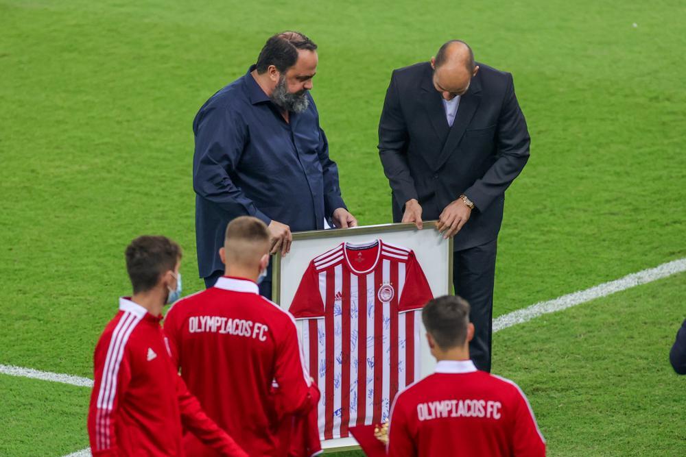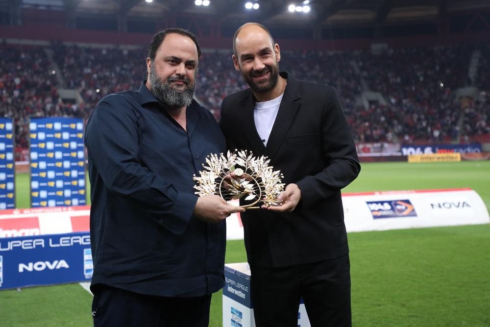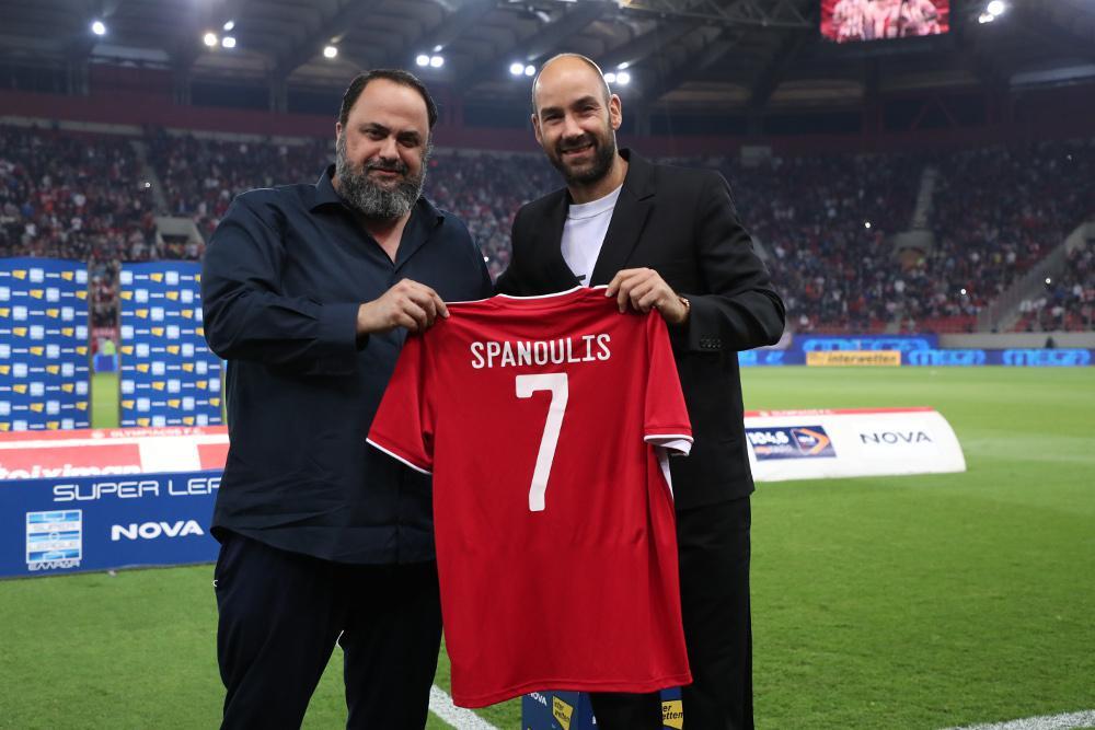 «Σήμερα έχουμε τη χαρά να βραβεύσουμε τον μεγαλύτερο αθλητή που έχει περάσει από την ομάδα μπάσκετ. Σε ευχαριστούμε και θέλουμε να συνεχίσουμε μαζί μας είτε στο ποδόσφαιρο είτε στο μπάσκετ» ήταν τα λόγια του ιδιοκτήτη της ΠΑΕ. Από την πλευρά του, ο Σπανούλης τόνισε: «Καλησπέρα παιδιά. Ευχαριστώ πολύ πρόεδρε που με βραβεύεις στον ναό του ελληνικού ποδοσφαίρου. Είμαι δίπλα στην ομάδα. Ζήτω ο Ολυμπιακός».