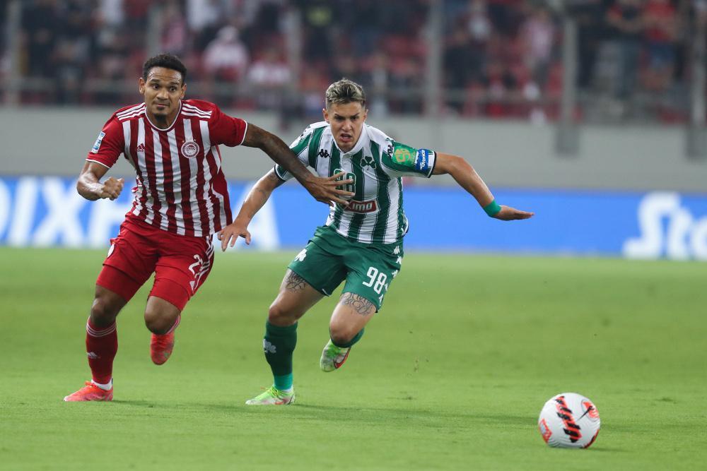 Ο Ολυμπιακός έδειξε από την αρχή μία διάθεση να πάρει τα ηνία του αγώνα, όμως το 4-4-2 που επέλεξε ο Πέδρο Μαρτίνς, με την ταυτόχρονη χρησιμοποίηση των Ελ Αραμπί και Τικίνιο, δεν βοήθησε τους πρωταθλητές. Από την άλλη, οι «πράσινοι» δεν κλείστηκαν, πίεσαν ψηλά και δυσκόλεψαν αρκετά την κυκλοφορία της μπάλας από πλευράς γηπεδούχων. Ο Παλάσιος βρέθηκε για πρώτη φορά στην αρχική ενδεκάδα, παίζοντας όμως πιο κοντά στον Καρλίτος, σε ρόλο δεύτερου επιθετικού.