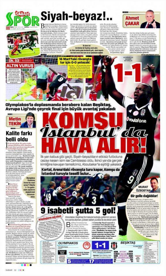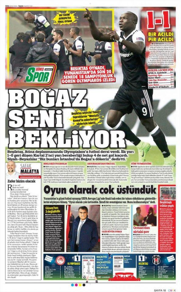 Αυτό αποτυπώνεται και στα πρωτοσέλιδα των σημερινών εφημερίδων με την «Gunes Spor» να είναι η πιο προκλητική, αναφέροντας… «Ο Βόσπορος σας περιμένει…».