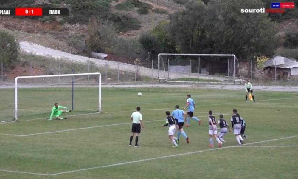 Ο γκολκίπερ της U-16 του ΠΑΟΚ δεν κατάλαβε εξαρχής στο παιχνίδι με τον Ατρόμητο Τριαδίου ότι ο αντίπαλός του θα εκτελούσε με αυτόν τον τρόπο.