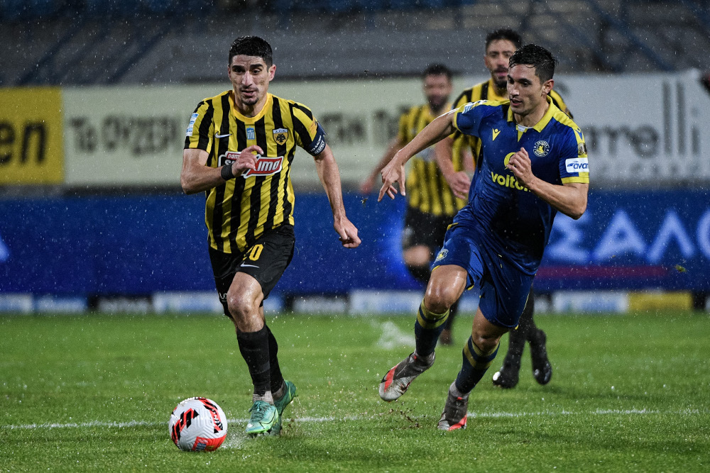 Σε ένα βαρύ αγωνιστικό χώρο λοιπόν, με αρκετό νερό στο τερέν, οι παίκτες των δύο ομάδων δυσκολεύονταν. Στο 12΄ ο Καραντώνης καταλόγισε πέναλτι σε μαρκάρισμα του Σιμόες στον Βαλιέντε, αλλά πήρε την απόφαση πίσω με τη χρήση του VAR καθώς ο ποδοσφαιριστής της ΑΕΚ φάνηκε να βρίσκει την μπάλα.