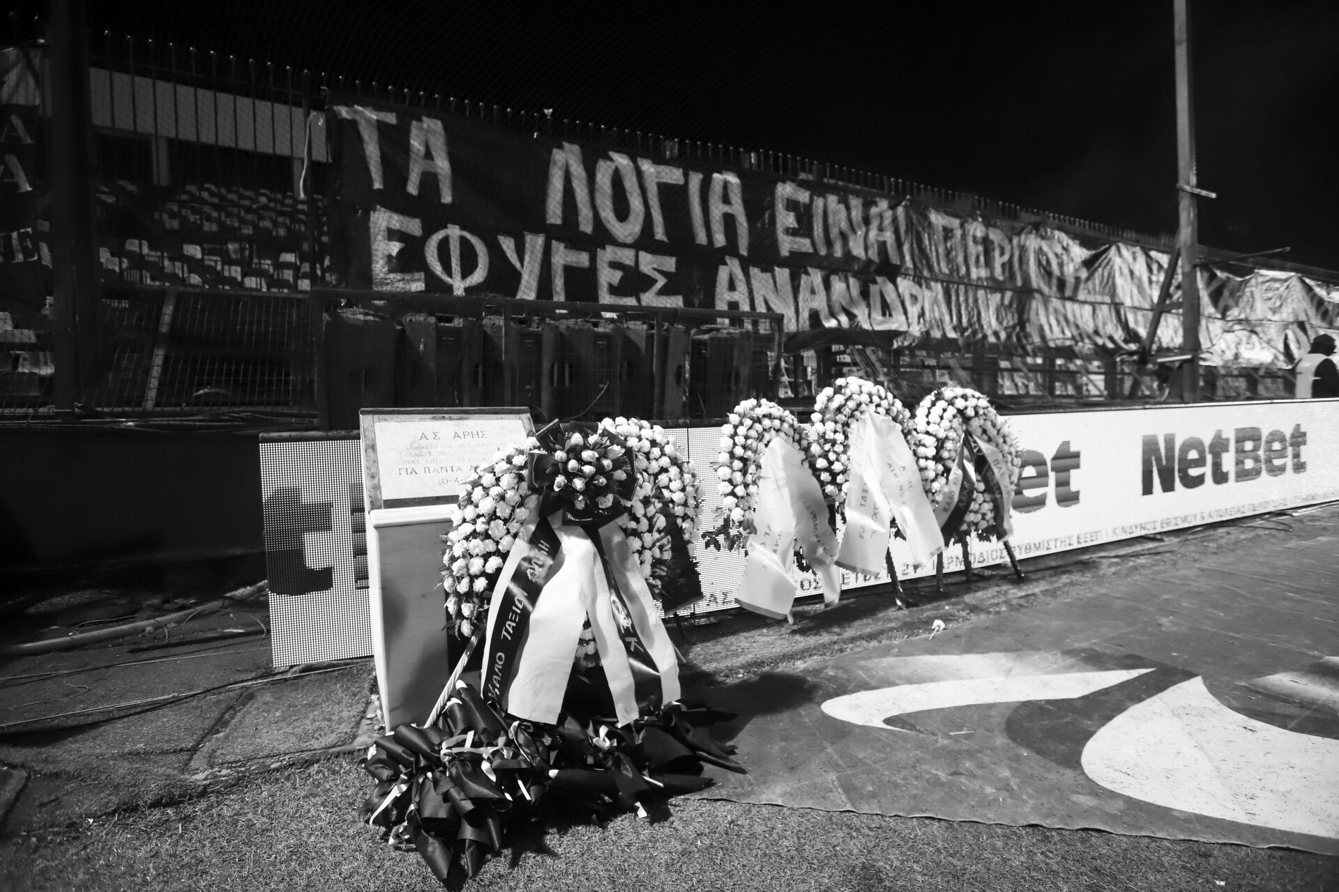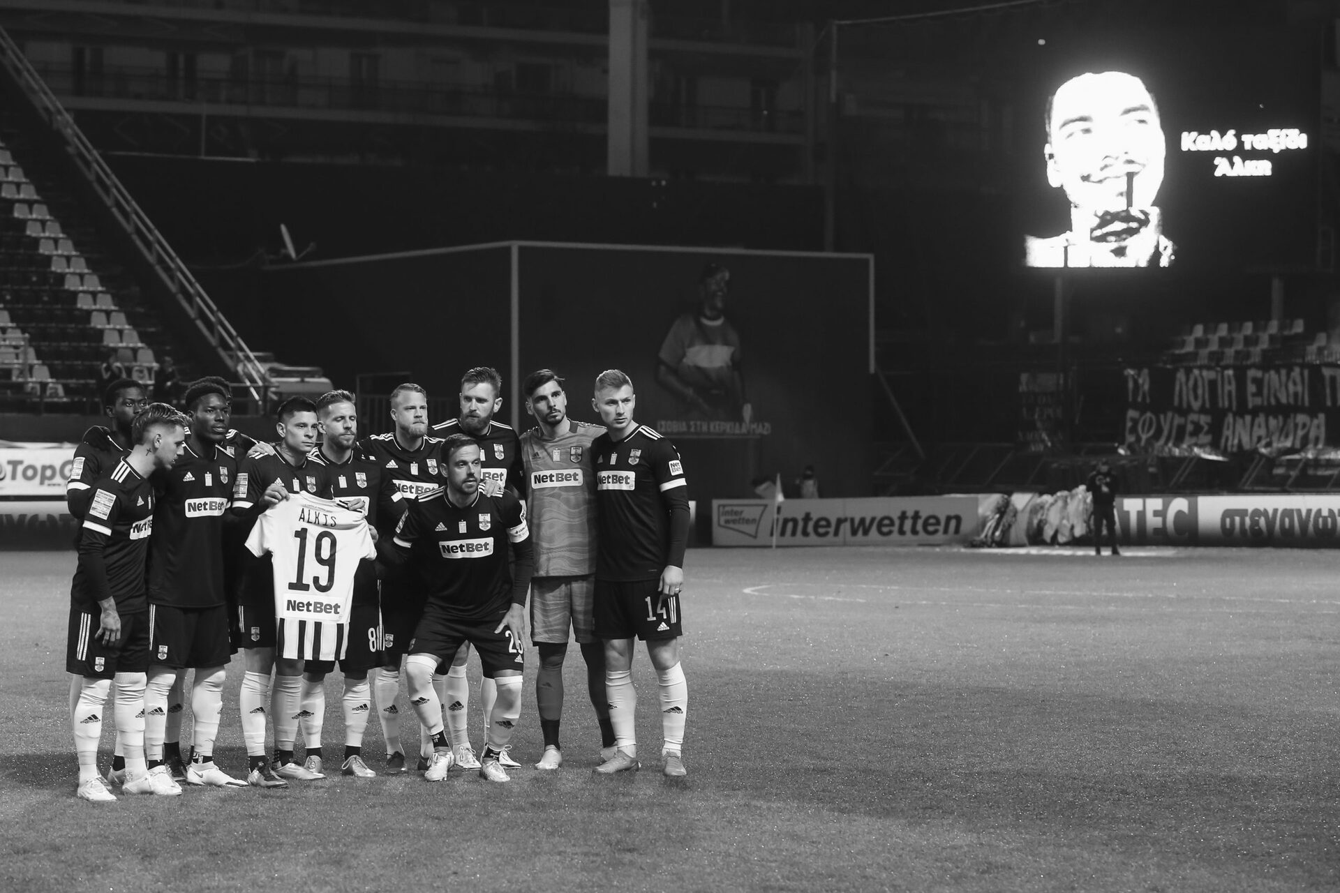 Πριν από τη σέντρα στο «Κλ. Βικελίδης» οι άνθρωποι των δύο ομάδων εναπόθεσαν από ένα κίτρινο τριαντάφυλλο, αλλά και στεφάνια μπροστά από τη Θύρα 3 στη μνήμη του Άλκη.