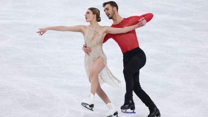 Το ζευγάρι από την Γαλλία, εκτέλεσε άπταιστα το πρόγραμμα του υπό τον ήχο της «Ελεγείας» του Γκαμπριέλ Φορέ, που παίζεται σε τσέλο και πιάνο και συγκέντρωσε 226,98 βαθμούς, συγκομιδή που αποτελεί παγκόσμιο ρεκόρ. Το αργυρό μετάλλιο, κατέκτησαν οι Βικτόρια Σινίτσινα και Νικίτα Κατσαλάποφ από την Ρωσία (220,51β.) και το χάλκινο, οι Μάντισον Χάμπελ και Ζάκαρι Ντόνοχιου από τις ΗΠΑ (218,02β.).