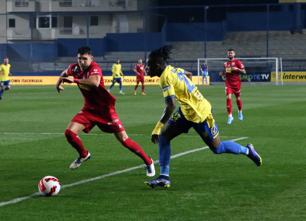 Οι γηπεδούχοι ήταν καλύτεροι από το ξεκίνημα της αναμέτρησης, απείλησαν στο 10΄ με σουτ του Μεντόσα που δεν βρήκε στόχο, είχαν δοκάρι στο 41΄ σε κεφαλιά του Νταγκό και άλλη μία καλή ευκαιρία στο φινάλε του α΄ μέρους, με κεφαλιά του Καρέλη που έφυγε άουτ. Ο Βόλος στο διάστημα αυτό είχε να αντιπαρατάξει μόνο τη φάση του 29ου λεπτού, όταν ο Ορόζ δεν μπόρεσε να κάνει την κοντινή προβολή στο γύρισμα του Φαν Βέερτ.