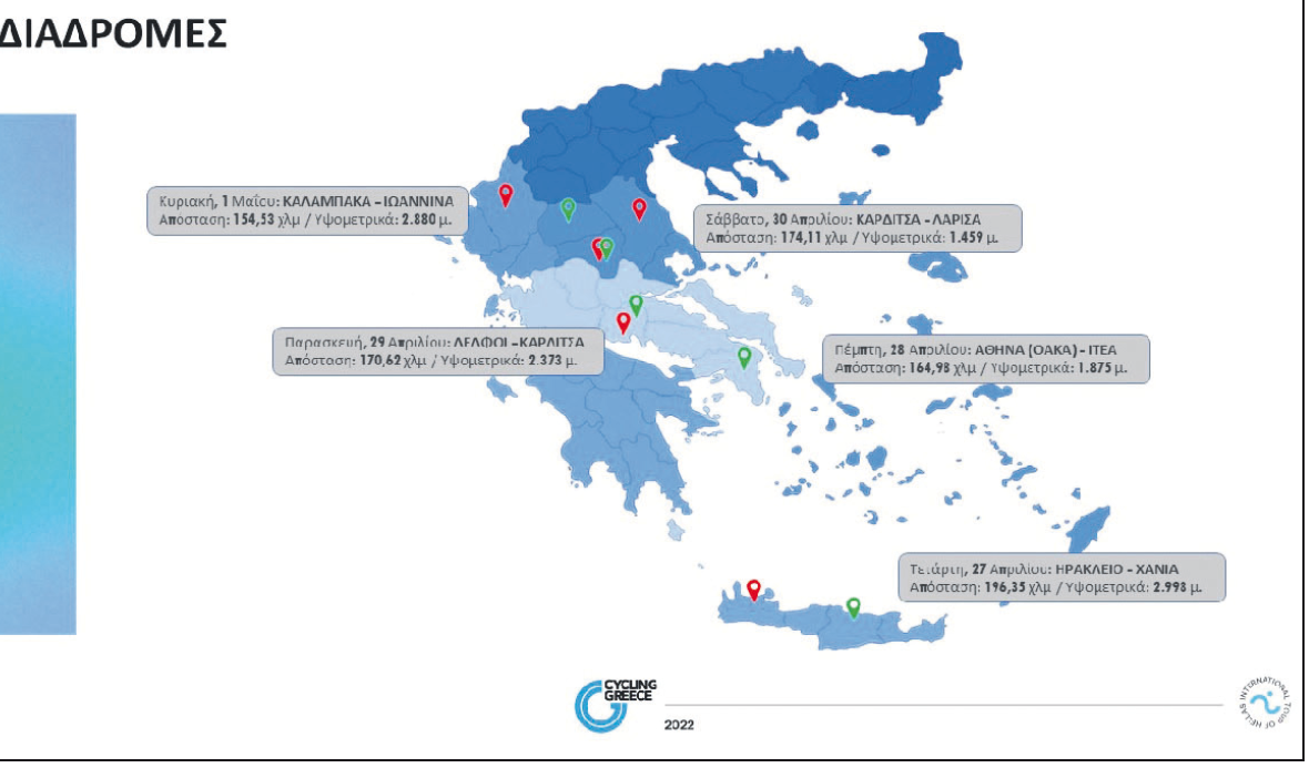 Αναλυτικά, για φέτος, οι διαδρομές του Διεθνούς Ποδηλατικού Γύρου, όπως ανακοινώθηκαν από τον υφυπουργό Αθλητισμού Λευτέρη Αυγενάκη: