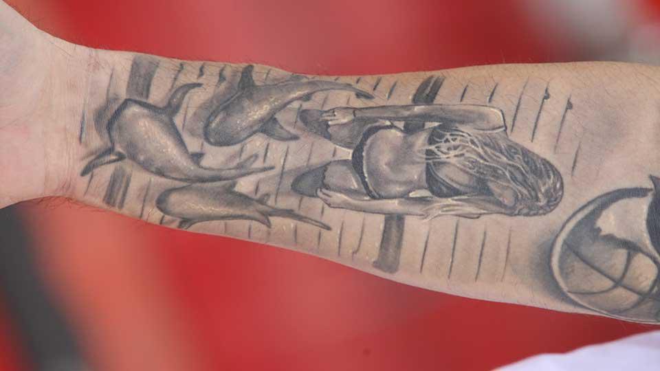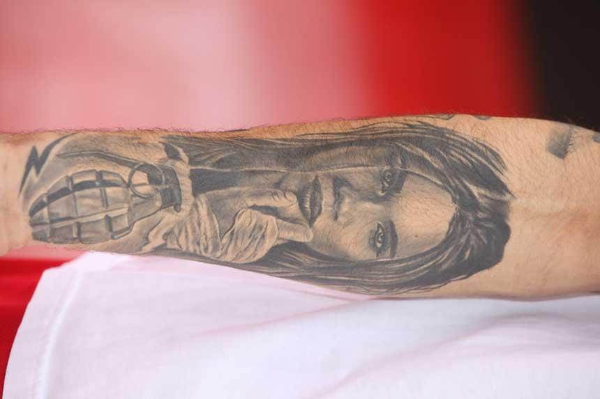 Και εδώ, όπως και στην περίπτωση των Πρίντεζη και Γκριν, έγινε αρκετή κουβέντα για το πόσα είναι τα τατουάζ και πως μετράει το καθένα. Τελικά, καταλήξαμε κάπου μεταξύ 15-20. Διαλέγετε και παίρνετε. Ακριβής αριθμός δεν προέκυψε. Ο Ιταλός γκαρντ έκανε το πρώτο του τατουάζ στα 15 του και αυτό που πάντα ξεχωρίζει, από όλα όσα έχει κάνει, είναι το όνομα της μητέρας του, Κάτια, που έχει στον καρπό του δεξιού του χεριού.