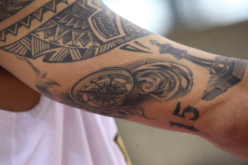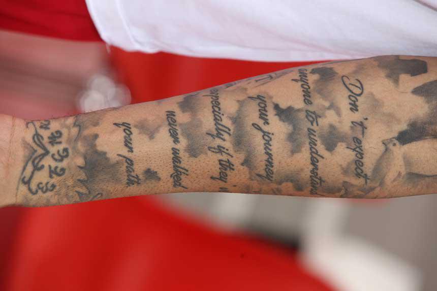 Το πρώτο του τατουάζ κλείνει πλέον… δεκαετία στο χέρι του. Και φυσικά αφορούσε την απώλεια του πατέρα του, ο οποίος έφυγε από τη ζωή το 1997. Ο αρχηγός του Θρύλου έκτοτε έχει κάνει ακόμη δύο τατουάζ και όλα αφορούν την οικογένεια του. Τη σύζυγο του και τα τέσσερα παιδιά του.