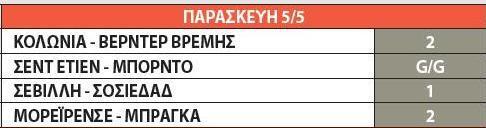 Η Βέρντερ Βρέμης έχοντας κάνει εξαιρετική πορεία στον δεύτερο γύρο του πρωταθλήματος έχει βαλθεί να ανέβει όσο το δυνατόν πιο ψηλά μπορεί στην βαθμολογία παίρνοντας το καλύτερο ευρωπαϊκό εισιτήριο και το «διπλό» στην έδρα της Κολωνίας αξίζει. Την ίδια επιλογή θα κάνουμε και στον αγώνα της Μορεϊρένσε με την Μπράγκα ενώ η Σεβίλλη αναμένουμε να επιστρέψει στις επιτυχίες στην Ισπανία. Η τετράδα μας θα ολοκληρωθεί με το G/G στον αγώνα της Σεντ Ετιέν με την Μπορντό.