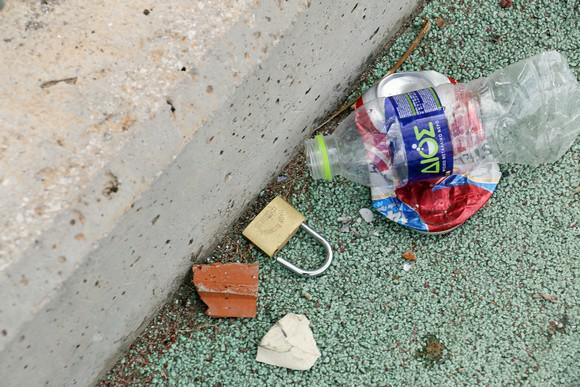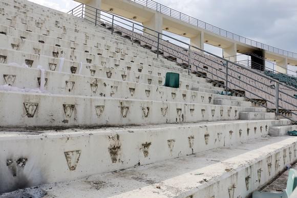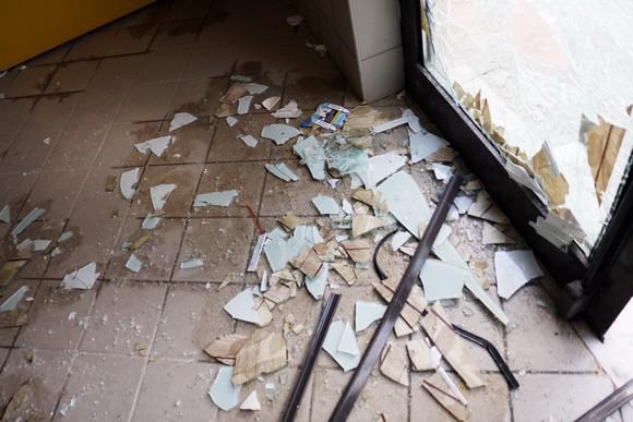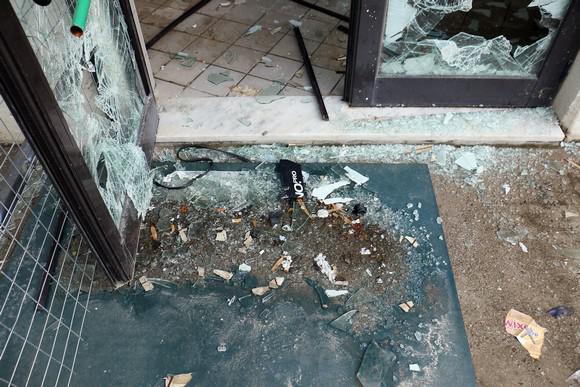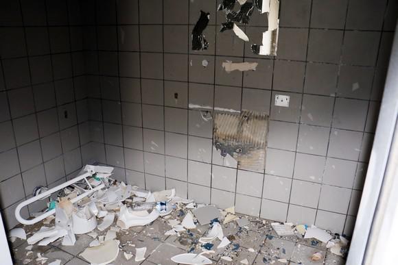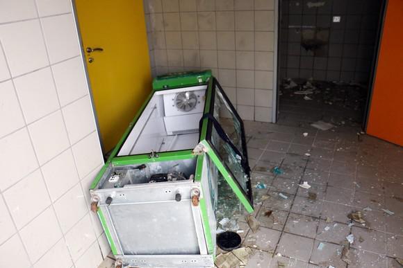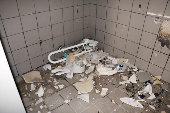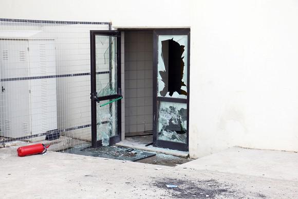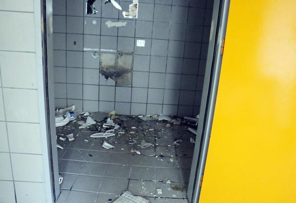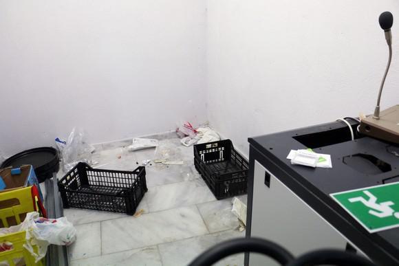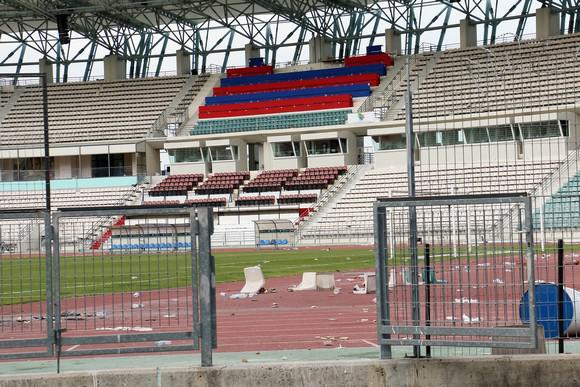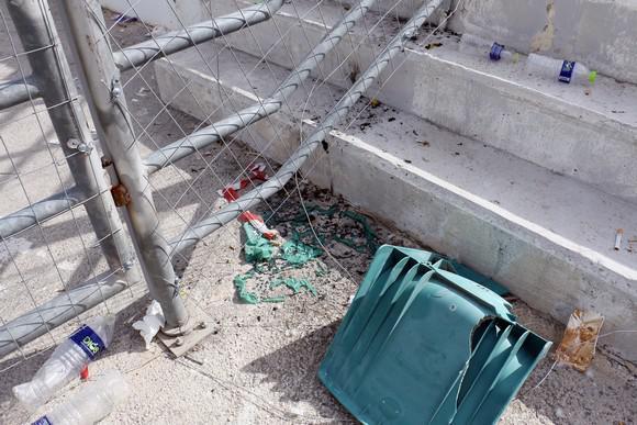 Κατεστραμμένες τζαμαρίες, σπασμένα γραφεία και τουαλέτες είναι μόνο μερικές από τις ζημιές που έχει υποστεί το γήπεδο.