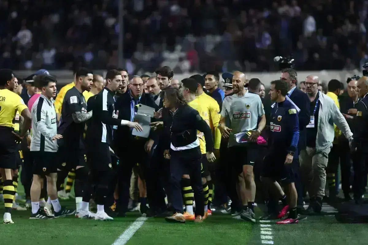 Ο Αργεντινός τεχνικός «συνελήφθη» από τον τηλεοπτικό φακό να αρπάζει για δευτερόλεπτα από τον λαιμό τον επικεφαλής της Αθλητικής Βίας στο ντέρμπι της Τούμπας, με ανθρώπους τόσο της ΑΕΚ όσο και του ΠΑΟΚ αλλά και της Λίγκας να προσπαθούν να τον ηρεμήσουν.
