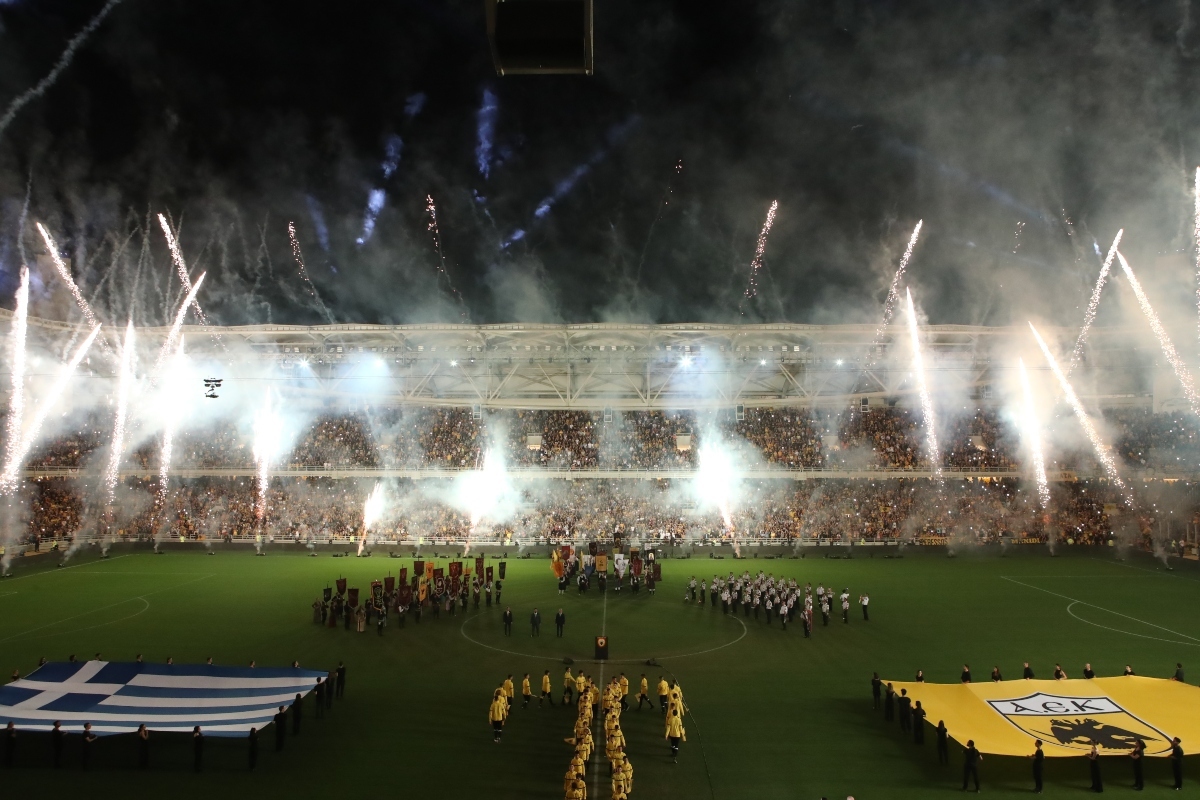 Η ΑΕΚ προετοίμασε μία εκπληκτική εκδήλωση για τα εγκαίνια της OPAP Arena, με το θέαμα να είναι εντυπωσιακό τόσο για τους 32.000 οπαδούς στην εξέδρα, όσο και για όλους όσους παρακολούθησαν από την τηλεόραση.