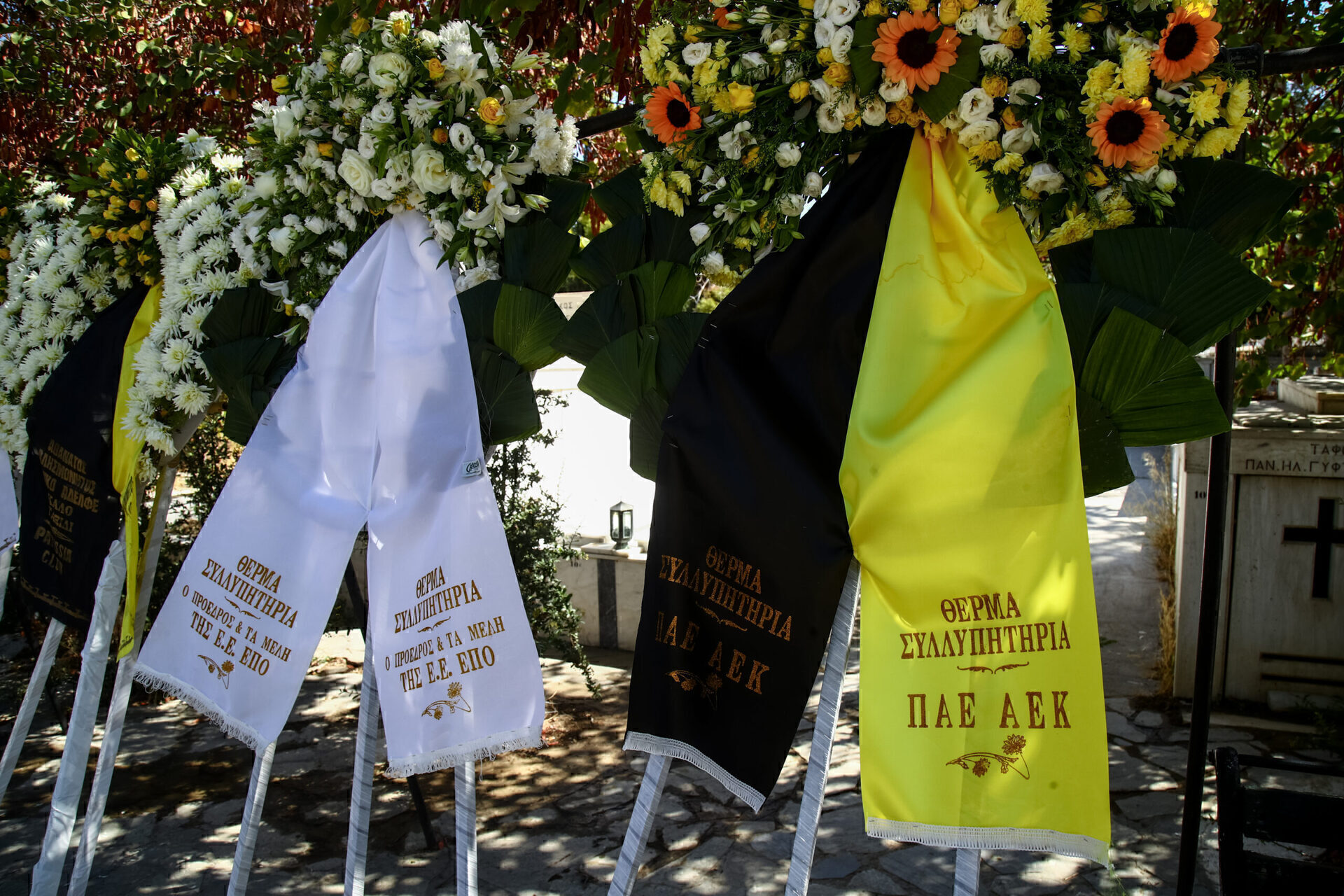 Άνθρωποι του στενού του οικογενειακού περιβάλλοντος, αλλά και κάποιοι απλοί φίλοι της ΑΕΚ αποχαιρέτησαν τον εμβληματικό οπαδό της ομάδας, το φέρετρο του οποίου ήταν τυλιγμένο με μία σημαία της Ένωσης. Μάλιστα, πριν μεταφερθεί στην εκκλησία για το μυστήριο, είχε περάσει και από την OPAP Arena.